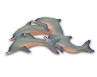 Wooden Wall Dolphins TI DESIGN. Web Signed Original 21 Wooden Dolphin Wall Hanging Folk Art Wood Carving Decor. Swimming dolphins are handpainted from real wood.